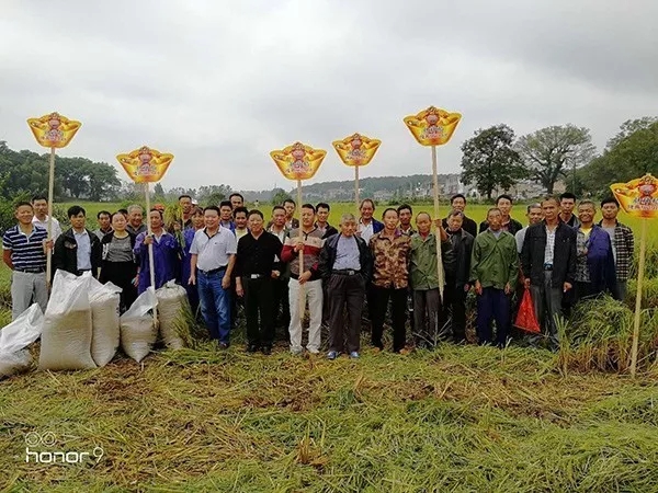 十五的月亮十六圓,十五過中秋,十六迎財(cái)神!2017年10月5日,中秋剛過完,上高縣賴總就迫不及待地邀請了上高縣的幾十位零售商和種田大戶在徐家渡鎮(zhèn)共賞財(cái)神稻——隆兩優(yōu)1988。