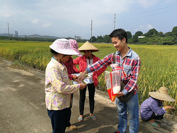 合作伙伴陳桂英對(duì)晶兩優(yōu)1212田間管理進(jìn)行講解
