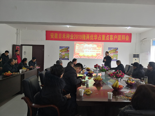 10點(diǎn)30分,由日禾種業(yè)總經(jīng)理魯家才主持,隆兩優(yōu)華占銷售團(tuán)隊(duì)向所有在座嘉賓拜年。祝愿我們珠聯(lián)璧合、豬年大吉、諸事順利,經(jīng)過(guò)一年的奮斗隆兩優(yōu)華占的合作伙伴們可以珠光寶氣!