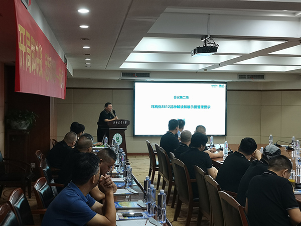會議第二項:技術(shù)專家姜文嘉對瑋兩優(yōu)8612品種進行了詳細解讀,瑋兩優(yōu)8612源自隆平高科新一代核心不育系的超級中稻品種,該品種含6個稻瘟病抗病基因,3個氮高效基因,1個矮桿基因,米質(zhì)透明度1級,其品種的安全性和技術(shù)含金量超前。另外姜總也就近期示范田建設(shè),督查情況進行了通報,并對后期管理提出了具體要求和建議。