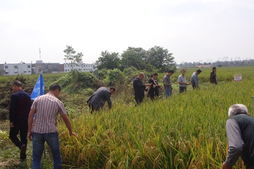 安徽穎上縣代理商田老板對(duì)遠(yuǎn)道而來(lái)參觀的河南客人說(shuō):“這個(gè)品種我仔細(xì)觀察了二年,它高抗、高產(chǎn)、優(yōu)質(zhì)、抗倒,竟沒(méi)有看到任何缺點(diǎn),歡迎大家來(lái)找隆兩優(yōu)華占的不足之處,如發(fā)現(xiàn)有紅包獎(jiǎng)勵(lì)!”,大家都紛紛下到田里,仔細(xì)查起來(lái),經(jīng)過(guò)一番觀摩,大家一致認(rèn)可隆兩優(yōu)華占的優(yōu)異表現(xiàn)。經(jīng)銷(xiāo)商朋友們?cè)谔镩g手捧黃燦燦、沉甸甸的稻谷,滿意的微笑充溢臉上,情不自禁的采摘,以帶回門(mén)店展示。相信隆兩優(yōu)華占龍旗將遍布河南固始縣的鄉(xiāng)鎮(zhèn),為百姓帶來(lái)豐收、創(chuàng)造更好的經(jīng)濟(jì)效益!