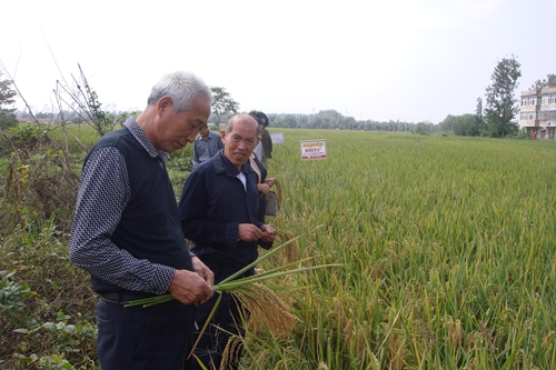 2014年9月30日,河南省固始縣10多位優(yōu)秀的種子經(jīng)銷(xiāo)商驅(qū)車(chē)400多里遠(yuǎn)赴安徽省穎上縣,對(duì)湖南亞華種子有限公司的中國(guó)種業(yè)最強(qiáng)音—隆兩優(yōu)華占進(jìn)行了田間觀摩、考查。該田塊5月4日育秧,6月10日移栽,栽插規(guī)格7寸×9寸,畝施肥僅40公斤含量50%的BB肥,全年打2次殺蟲(chóng)的藥,純粹的農(nóng)戶粗放管理,但隆兩優(yōu)華占的表現(xiàn)確實(shí)讓到會(huì)的朋友們驚奇:長(zhǎng)勢(shì)茂盛、清爽、沒(méi)有一點(diǎn)病害,莖桿粗壯、韌性好、無(wú)任何倒伏跡象,分蘗力強(qiáng)、多的有30根分蘗,穗大粒多、主穗長(zhǎng)32厘米、著粒緊密達(dá)500粒,結(jié)實(shí)率高達(dá)86.5%、產(chǎn)量1400斤以上。