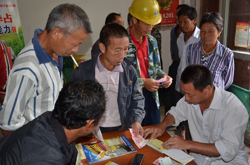 2014年9月19日,早晨8點40分,天下起了小雨。七琴鎮(zhèn)的種子零售商洪海平略帶擔(dān)心地看了看手機(jī)上的時間,離約好去田間觀摩中國龍稻—隆兩優(yōu)華占只剩半個小時了,卻只到了不到10人。雨卻是越下越大。突然,一陣陣摩托車的轟鳴聲由遠(yuǎn)及近,洪老板的臉上也露出了笑容,正是農(nóng)民朋友們冒著雨一個接一個地抵達(dá)集合點,隨后拿著領(lǐng)取到的宣傳資料笑著交談著,等待著出發(fā)。