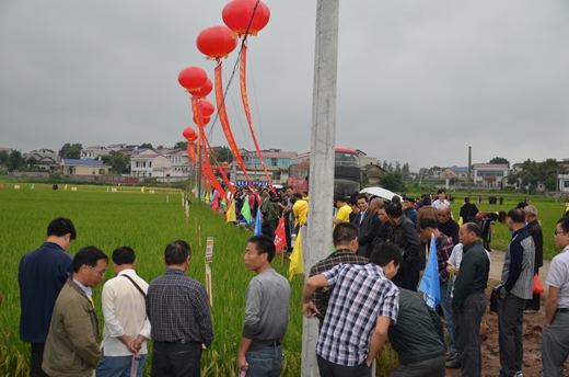 9月18日,袁隆平第四期超級稻攻關先鋒組合,中國龍稻-隆兩優(yōu)華占湖南省現(xiàn)場觀摩會在寧鄉(xiāng)舉行。來自全省的240余名經銷商、種植大戶在寧鄉(xiāng)縣大成橋鎮(zhèn)鵲山村50畝示范基地,共同見證了隆兩優(yōu)華占的強勢表現(xiàn)。