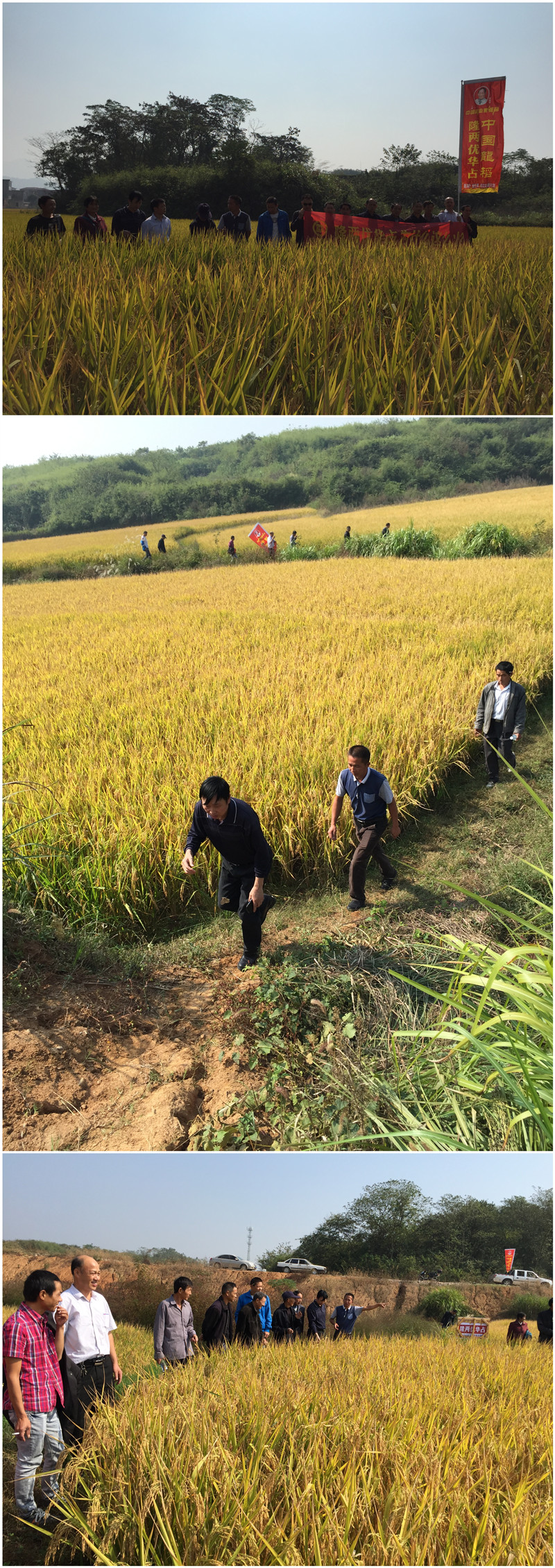 2015年10月18日,清風(fēng)徐徐,紅旗飄飄,江西彭澤縣代理商劉澤小組織了本縣各鄉(xiāng)鎮(zhèn)經(jīng)銷商和種田大戶齊聚黃花鎮(zhèn),成功開展了隆兩優(yōu)華占在彭澤縣的觀摩會(huì)首秀。