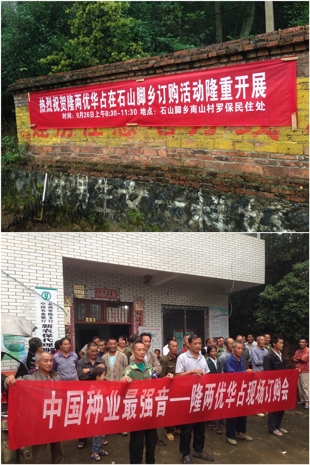 2015年9月26日,在零陵區(qū)石山腳鄉(xiāng)南山村召開了隆兩優(yōu)華占現(xiàn)場(chǎng)預(yù)訂大會(huì),共80余位零售商與大戶到場(chǎng)。會(huì)議現(xiàn)場(chǎng)大家認(rèn)真聽取了亞華種業(yè)銷售人員對(duì)隆兩優(yōu)華占四大優(yōu)勢(shì)的介紹——超高產(chǎn),超優(yōu)質(zhì),超抗病,超抗倒,大家一致認(rèn)可只有同時(shí)具備這四大優(yōu)勢(shì)的品種才是農(nóng)戶的種植首選。隨后,零陵聯(lián)合利農(nóng)唐總介紹了在零陵區(qū)隆兩優(yōu)華占的表現(xiàn)和典型,以及“不預(yù)定,不供種”的銷售政策。預(yù)訂會(huì)農(nóng)戶積極踴躍地訂購(gòu)隆兩優(yōu)華占,大家都說:明年我們就種隆兩優(yōu)華占!