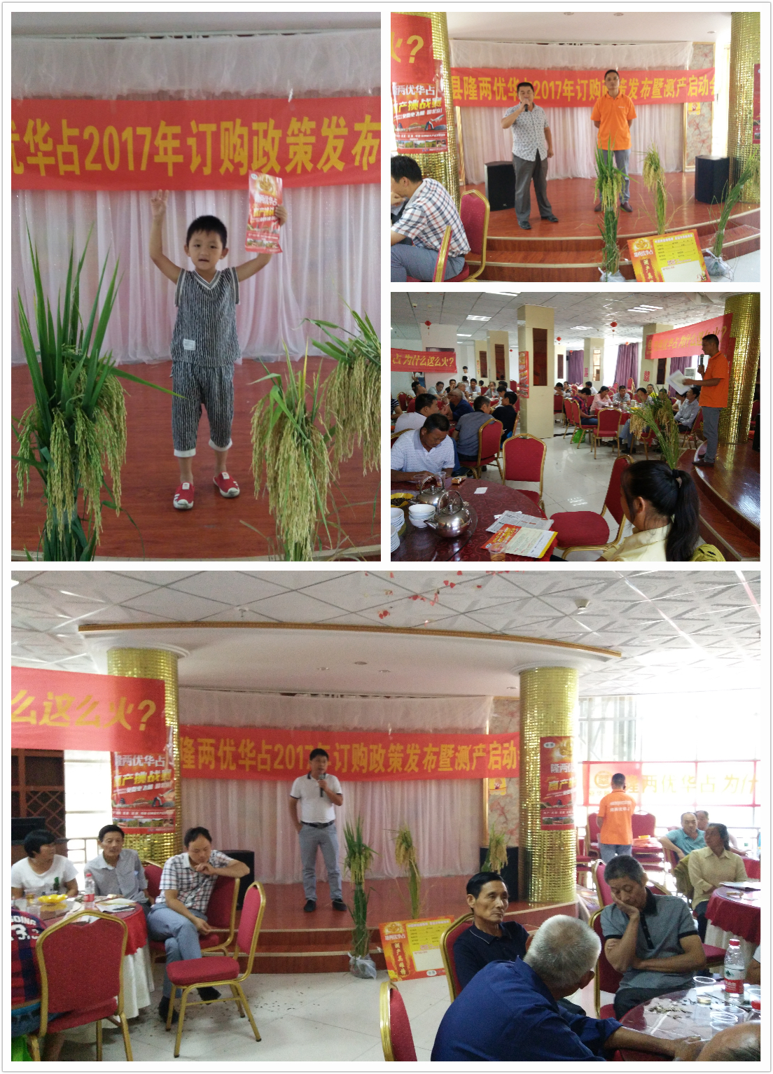固始縣代理商石總詳細(xì)講解了2017年隆兩優(yōu)華占的零售商預(yù)定和農(nóng)戶預(yù)定政策,只有早預(yù)定,多預(yù)定才能享受更多優(yōu)惠,特別強(qiáng)調(diào)華占三部曲:一、要落實(shí)農(nóng)戶預(yù)定,二、要維護(hù)好市場(chǎng),三、要搞好測(cè)產(chǎn)工作,必創(chuàng)隆兩優(yōu)華占的銷售創(chuàng)高峰。在會(huì)議氣氛的帶動(dòng)下大家踴躍發(fā)言共享自己所在鄉(xiāng)鎮(zhèn)隆兩優(yōu)華占結(jié)實(shí)率高、產(chǎn)量高、耐高溫等優(yōu)秀表現(xiàn),表示一定要做好、做強(qiáng)這個(gè)30年難遇的超級(jí)稻好品種。