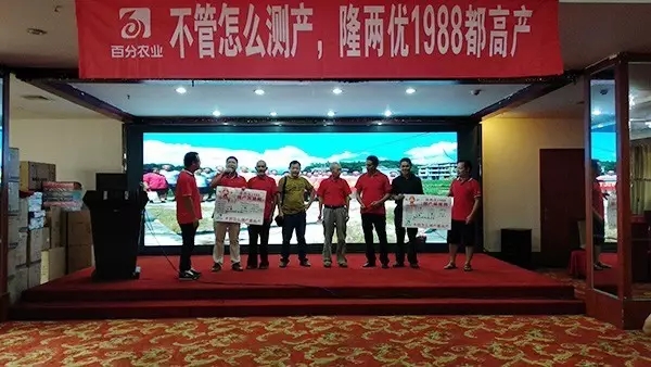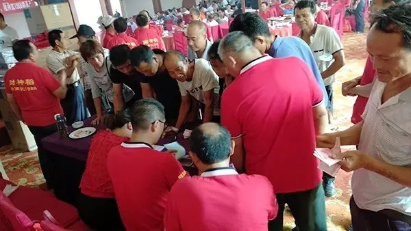 隨后,大家來到酒店進行訂購會,會議還沒開始,很多大戶紛紛問在哪里預訂,鼎城代理商鄧總說今天不僅給大家最好的品種,還有訂購抽大獎活動,訂的越多獲得大獎的概率就越大,瞬間點爆預訂現(xiàn)場,短短幾分鐘預訂金突破20萬,會議最終預訂財神稻隆兩優(yōu)1988種子達17000余斤。
