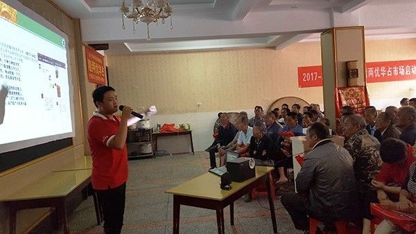 隨后,大家返回江陵灘橋鎮(zhèn)開展市場(chǎng)啟動(dòng)會(huì),會(huì)議開始,首先由荊州經(jīng)銷商孫友軍致開場(chǎng)詞,緊接著由亞華湖北分公司喬炳輝給在場(chǎng)農(nóng)戶介紹了公司及隆兩優(yōu)華占的相關(guān)信息,隨后由亞華湖北分公司陳小雙做了相關(guān)補(bǔ)充,并對(duì)之后的工作安排和相關(guān)政策進(jìn)行了詳細(xì)講解,最后在當(dāng)?shù)亓闶凵谈独习宓闹鞒窒麻_始訂購(gòu),本次會(huì)議預(yù)期到場(chǎng)100人,實(shí)際到場(chǎng)300人,訂購(gòu)場(chǎng)面異?;鸨?!