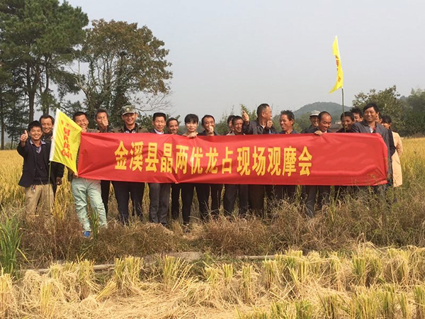 2017年11月4日,在金溪縣黃總的帶領(lǐng)下,全縣經(jīng)銷商一起來(lái)到金溪縣雙唐鎮(zhèn)古圩村參觀晶系明珠——晶兩優(yōu)龍占的田間表現(xiàn)。