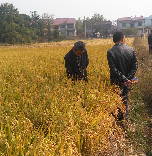 剛到田間,經(jīng)銷商朋友們就對(duì)晶兩優(yōu)龍占緊湊的株葉形態(tài)表示欣賞,一層層稻穗也為晶兩優(yōu)龍占的產(chǎn)量提供了堅(jiān)實(shí)的保障。為了深入了解這個(gè)品種,有些人親自到田中查看起莖稈的抗倒性、抗病性,沒有發(fā)現(xiàn)一處病斑。也有朋友表示了對(duì)結(jié)實(shí)率、米質(zhì)的關(guān)心,經(jīng)查驗(yàn),晶兩優(yōu)龍占起碼有85%以上的結(jié)實(shí)率。最后,晶兩優(yōu)龍占以優(yōu)異的全面表現(xiàn)獲得了與會(huì)人員的一致好評(píng)。