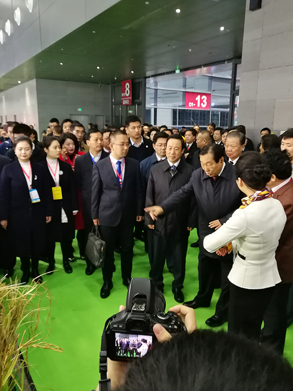 湖南省委副書記、省長許達(dá)哲等一行領(lǐng)導(dǎo)陪同全國政協(xié)副主席、民革中央常務(wù)副主席齊續(xù)春巡查現(xiàn)代農(nóng)業(yè)新產(chǎn)品展館。