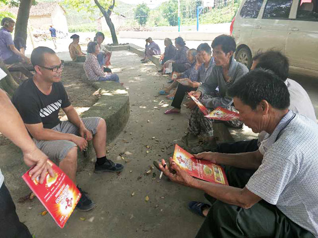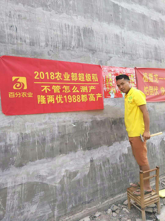 六月初廣西迎來來自湖北、湖南、江西、安微等地的營銷一線人員。他們是“財(cái)神”使者,他們不懼炎熱,不怕辛苦,不嫌麻煩的走街串巷,粘貼廣告,只要是他們能走到的地方,滿街滿巷都是“財(cái)神稻”的字樣!同時(shí),他們還召集農(nóng)民,很有耐心的為他們講解隆兩優(yōu)1988的優(yōu)勢,達(dá)到只要是有人的地方就有我們的“財(cái)神”使者!