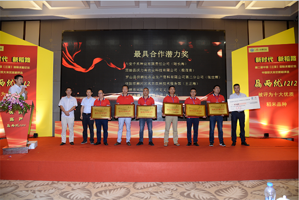 此次大會(huì)中湘農(nóng)業(yè)對(duì)優(yōu)秀經(jīng)銷(xiāo)商頒發(fā)了獎(jiǎng)?wù)?,并與優(yōu)秀米企業(yè)等簽定了合作協(xié)議,晶兩優(yōu)1212米質(zhì)優(yōu)、適應(yīng)性強(qiáng)的特性受到了很多種植大戶(hù)和米企業(yè)的青睞,此次合作協(xié)議的簽定也將表示農(nóng)戶(hù)種植晶兩優(yōu)1212有很好的保障,不僅經(jīng)銷(xiāo)商賣(mài)得放心,農(nóng)戶(hù)也種得放心。