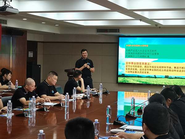 會議第一項:亞華品牌營銷總監(jiān)洪祥對隆平高科亞華水稻事業(yè)部成立以及瑋兩優(yōu)8612全國運作模式作了詳細的介紹,洪總針對當(dāng)前國家對糧食安全、種業(yè)行業(yè)的重視程度客觀的分析了隆平高科亞華水稻事業(yè)部成立的意義及重要性,同時介紹了瑋兩優(yōu)8612品種的定位和運作規(guī)劃以及新一代大單品打造的工作推進和組織保障。公司將上下聯(lián)動、凝心聚力打造第一大單品。