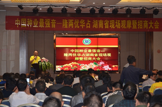 最后,湖南亞華種子公司總經(jīng)理青志新先生就種業(yè)的現(xiàn)狀、隆兩優(yōu)華占的規(guī)劃以及公司的全新推廣模式進行了深入淺出的介紹,青志新總經(jīng)理祝愿各位事業(yè)伙伴,與亞華一道攜手共進,借中國種業(yè)最強音-隆兩優(yōu)華占這個閃亮新星,創(chuàng)造新的輝煌,締造新的傳奇!