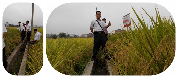 經銷商們來到高產示范片,對深兩優(yōu)5814的生長情況進行了解,并聽取了高州市種子經營部總經理鄭信權對品種優(yōu)勢的介紹:“深兩優(yōu)5814是清華大學最新科研成果,Y58S系列中米質更優(yōu)的超級稻品種,也是國、粵雙審的高產品種,2010年農業(yè)部驗收畝產達870.5公斤,是一個集高產,抗病,優(yōu)質于一身的好品種。”
