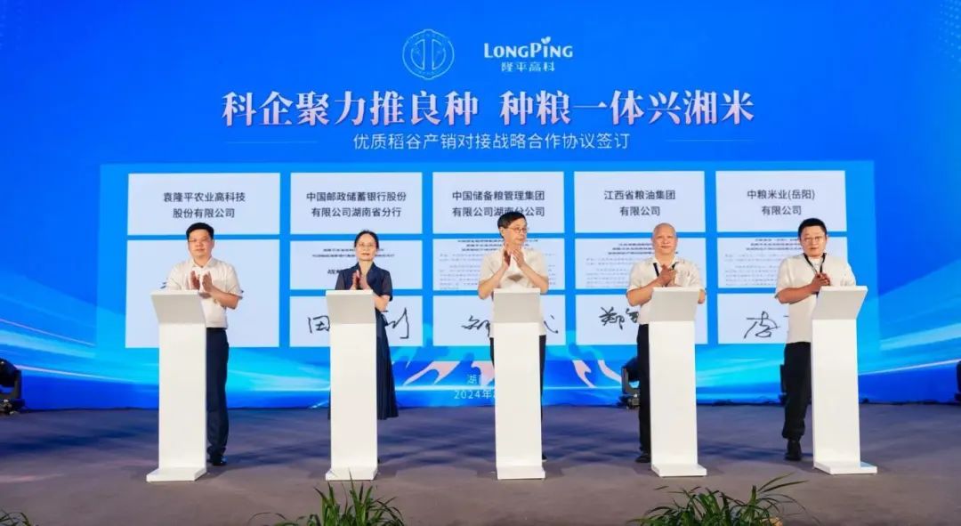 合作,共同攜手振興湘米,隆平高科分別與郵儲銀行湖南分行、中央儲備糧湖南分公司、江西省糧油集團(tuán)、中糧米業(yè)簽署了產(chǎn)業(yè)鏈戰(zhàn)略合作協(xié)議。