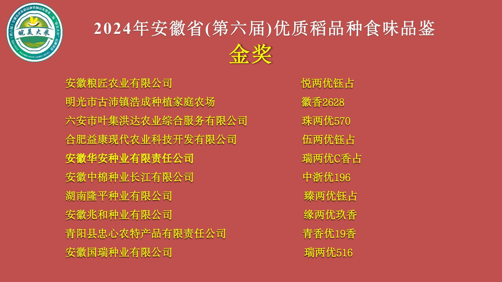 1月11日,安徽?。ǖ诹鶎茫﹥?yōu)質(zhì)稻品種食味品鑒暨第二屆“皖美大米”品牌評選結(jié)果發(fā)布會上,湖南亞華種業(yè)有限公司雜交水稻品種“悅兩優(yōu)鈺占”、“伍兩優(yōu)鈺占”在52家單位申報(bào)的65個參評品種中脫穎而出,分別榮獲優(yōu)質(zhì)稻品種食味品鑒金獎第一名和第四名的好成績。