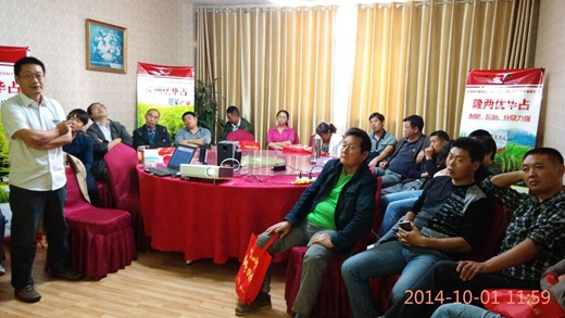 在代理商楊軍的組織下,中國龍稻—隆兩優(yōu)華占零售商觀摩會勝利召開。此次有二十多位零售商參加會議。上午11點(diǎn),室內(nèi)會議開始。湖南亞華安徽負(fù)責(zé)人武俊海先生給大家詳細(xì)講解了隆兩優(yōu)華占這個品種的特征特性,就抗病性,抗倒和穩(wěn)產(chǎn)性方面進(jìn)行分析,使各位零售商深度認(rèn)識隆兩優(yōu)華占。