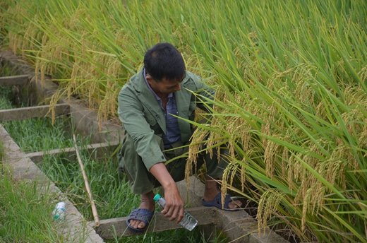 早上9時,我們來到種田大戶張才山的300畝隆兩優(yōu)華占示范田,金燦燦的稻穗映入眼簾。部分零售商情不自禁的走進(jìn)隆兩優(yōu)示范田,翻開稻株不斷地打量著,并不斷地稱其穗粒密,結(jié)實(shí)率高,株型清秀,莖桿粗壯。一位種田大戶高老板開始責(zé)怪華總,這么好的品種,今年怎么不推薦給他做示范,并表示來年至少要種植500畝隆兩優(yōu)華占;另一位農(nóng)戶說,像他這樣的田,應(yīng)該畝產(chǎn)達(dá)1600斤以上,但是我比他種的還要好,畝產(chǎn)能超1700斤。