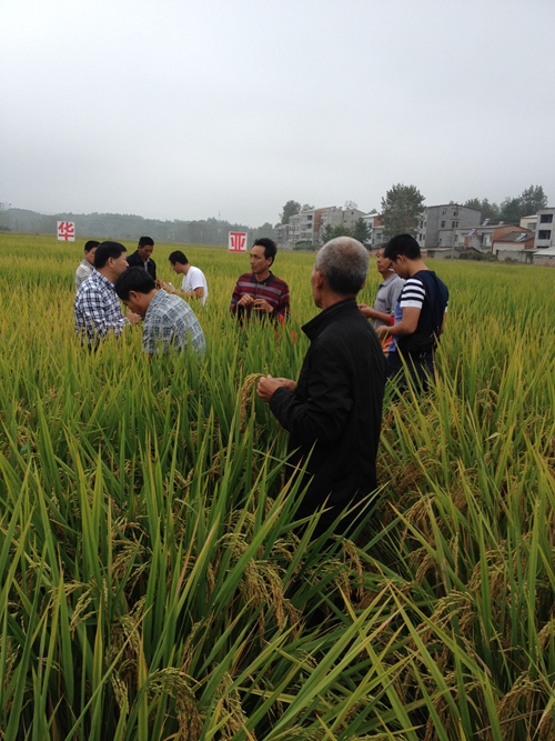 隨行的不少專家聽(tīng)到介紹,迫不急待的就跑到田間去查看品種的分裂,結(jié)實(shí)率,抗病性等;“這樣的天氣竟然沒(méi)有稻瘟病,稻曲病,這個(gè)品種抗性非常好!”,“這個(gè)品種的有效分裂平均下來(lái)估計(jì)都有19根以上!”,“這線子(方言:穗子)好長(zhǎng)啊,下面的灌漿也灌滿了,一點(diǎn)癟谷都沒(méi)啊!”,走在田邊看著大家都在全心投入的觀察著,不時(shí)的發(fā)出驚嘆,在這樣的惡劣的天氣環(huán)境下,竟然能有這樣的表現(xiàn),況且是在秧齡期已經(jīng)達(dá)到47天了才移栽的,產(chǎn)量還是這么高,他們都覺(jué)得驚奇!