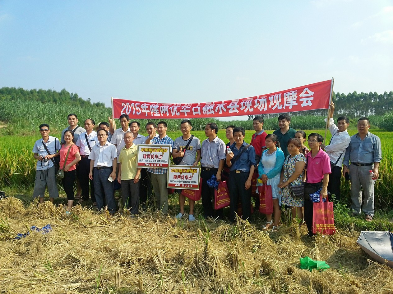 8月8日下午3點(diǎn)半,中國種業(yè)最強(qiáng)音--隆兩優(yōu)華占在山清水秀的廣西大苗山--融水苗族自治縣永樂鄉(xiāng)榮山村油榨屯隆重召開現(xiàn)場觀摩會(huì)。時(shí)間雖正值下午烈日當(dāng)頭,但絲毫不影響經(jīng)銷商到田間現(xiàn)場觀摩的熱情,參加本次觀摩會(huì)的有融水縣農(nóng)業(yè)局種子管理站領(lǐng)導(dǎo)、核心鄉(xiāng)鎮(zhèn)零售商以及種田大戶近30人,共同見證“龍稻”--隆兩優(yōu)華占的風(fēng)采!