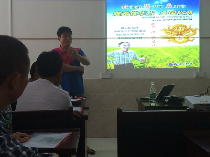 觀摩會后,我們一行回到馬路鎮(zhèn)農(nóng)技站會議室召開室內(nèi)會議。會上馬路鎮(zhèn)農(nóng)技站站長對示范田進(jìn)行了詳細(xì)客觀的介紹。新寧代理商韓總表示,隆兩優(yōu)華占是一個(gè)集抗病,高產(chǎn),米優(yōu)等優(yōu)點(diǎn)于一身的高端品種,是目前中稻品種里少有的國標(biāo)一級米的品種,我公司將回收示范田的稻谷,給大家提供米樣,我們公司將把隆兩優(yōu)華占做為下年度重點(diǎn)推廣的品種,希望各位老板積極配合推廣。會上各鄉(xiāng)鎮(zhèn)代理商也對隆兩優(yōu)華占給予了很高的評價(jià),一致認(rèn)為隆兩優(yōu)華占是一個(gè)值得推廣的品種。