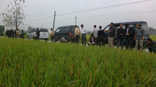 2014年9月13日,在亞華種業(yè)肥東縣經(jīng)銷商的帶領(lǐng)下,來自肥東縣各水稻區(qū)鄉(xiāng)鎮(zhèn)的零售商50余人。分別觀摩了位于肥東縣撮鎮(zhèn)的廣兩優(yōu)矮93和梁園鎮(zhèn)的隆兩優(yōu)華占的現(xiàn)場。