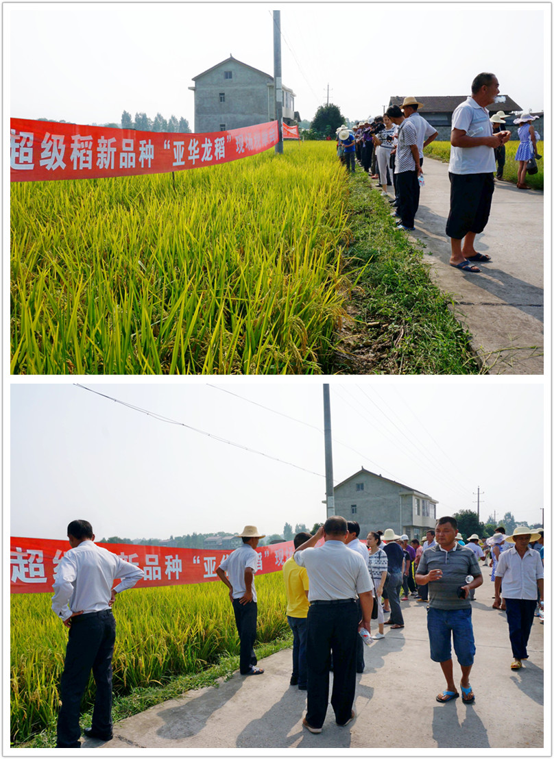 2015年9月6日桃源縣代理商黃繼桃組織全縣經銷商近40人,對漳江鎮(zhèn)梅溪橋村農戶楊明元種植的“亞華龍稻”進行了現場觀摩,據與會人員初步測產,楊明元種植的一丘3.5畝“亞華龍稻”畝產可達735.6公斤,比大面積種植的其他品種畝增產150.8公斤,增產25.8%。今年全縣6個鄉(xiāng)鎮(zhèn)種植“亞華龍稻”,種植面積達到710畝,平均畝產達到650.8公斤,這樣大面積的產量無疑代表著成功!