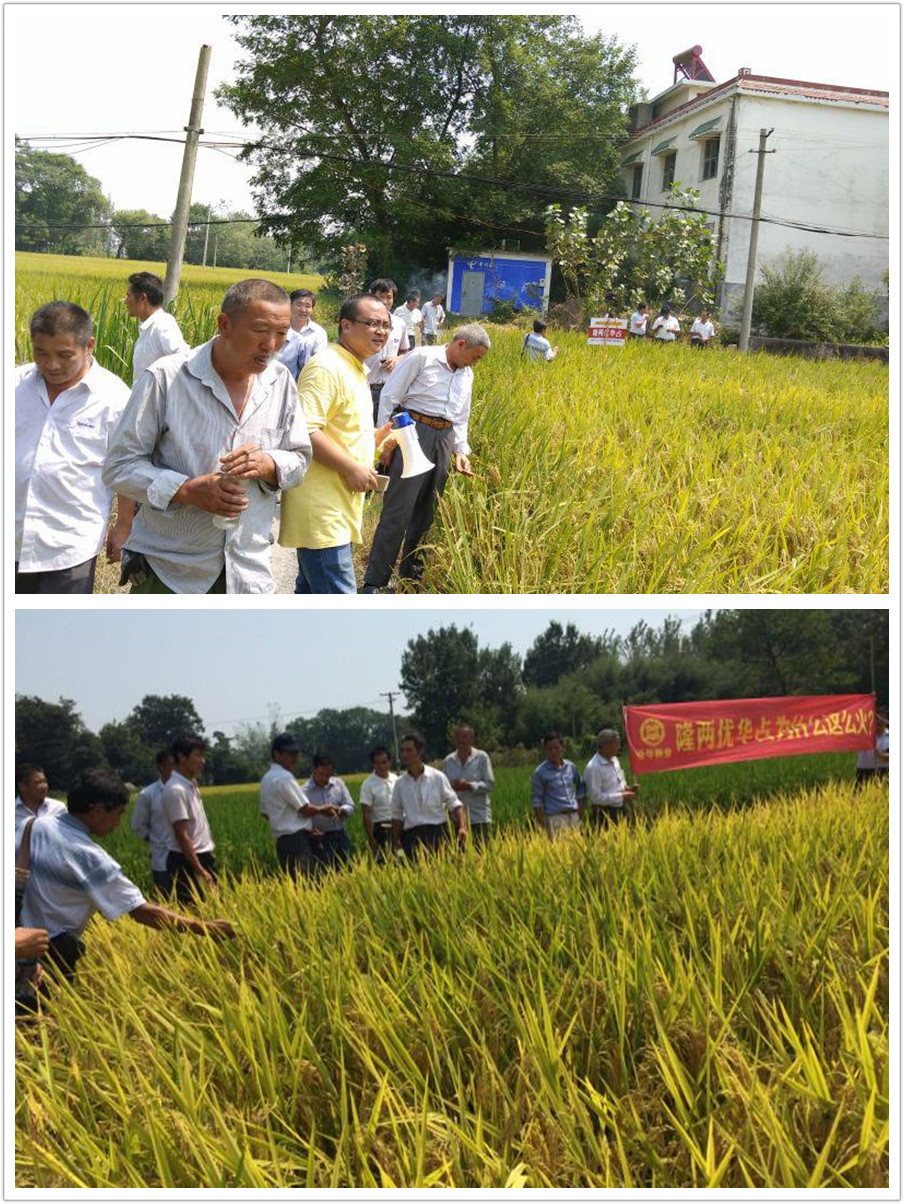 大家在吳總的引導下來到田邊:“今天請大家來看看我們今年銷售的、種田大戶種的隆兩優(yōu)華占表現(xiàn)到底怎么樣,首先告訴大家一個好消息,我們這個好品種隆兩優(yōu)華占已經(jīng)通過國家審定了,有了自己的身份證,審定編號:2015026,不僅僅如此,隆兩優(yōu)華占將通過全國四大稻區(qū)的審定,一個品種能通過全國四大稻區(qū)的審定,在國內也找不出來啊,這說明什么?說明隆兩優(yōu)華占,1、適應性廣2、抗性好,稻瘟病抗性綜合指數(shù)2.2,這樣的抗性不錯??!3、抗高溫、耐低溫,2013年的高溫年份、2014年的低溫年份對隆兩優(yōu)華占的結實率沒有影響,結實率都達到了90%以上4、產(chǎn)量高、米質屬于國家標準一級米啊,不吃菜都能吃三碗米飯?。?、抗倒伏,是袁隆平院士贊譽的‘金剛不倒鐵桿超級稻’”。