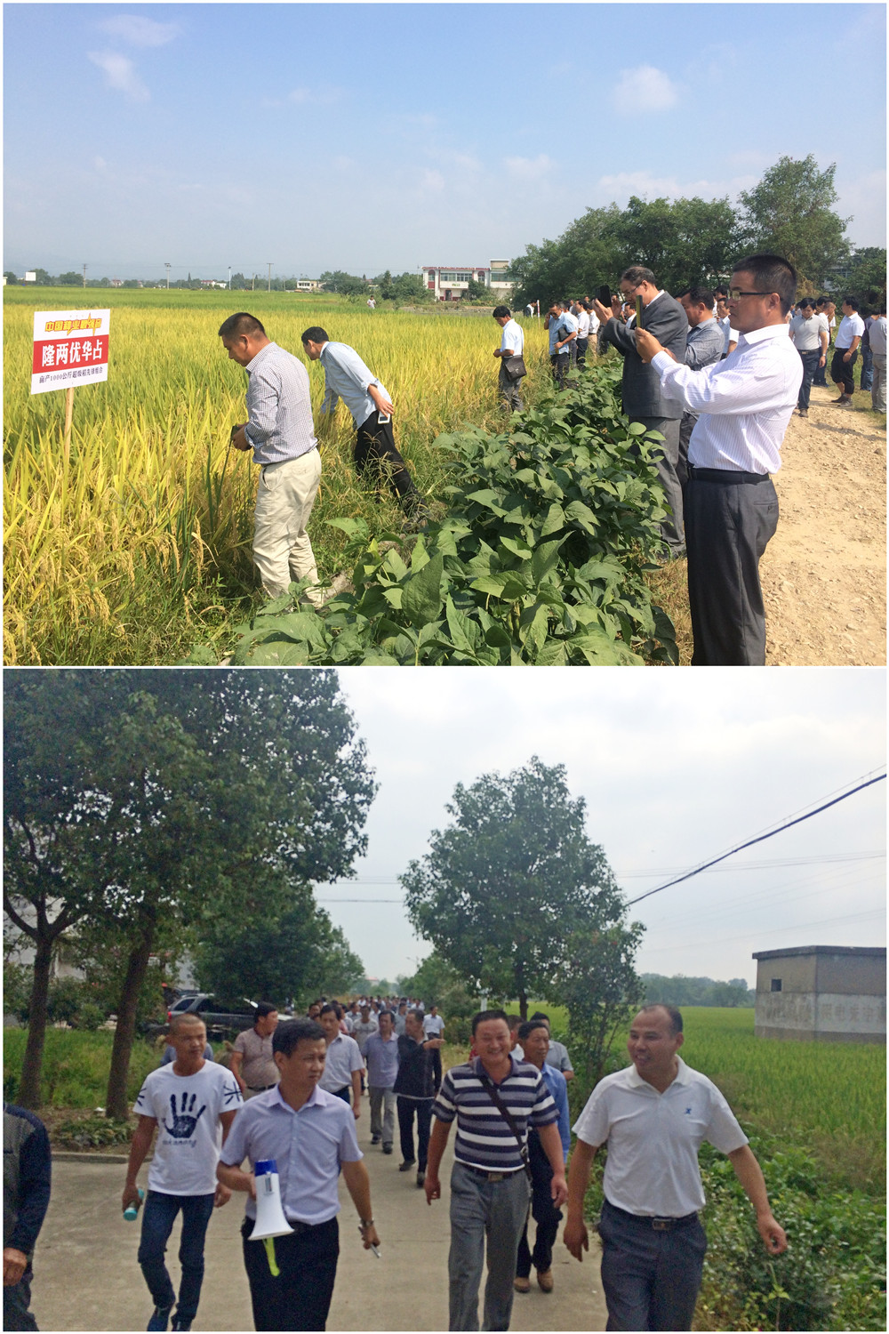 2015年9月15日,在安徽桐城市范崗鎮(zhèn)楊安村成功召開中國龍稻--隆兩優(yōu)華占觀摩會。桐城豐禾種業(yè)的吳總帶領著一百多位零售商和種田大戶,來到范崗鎮(zhèn)楊安村現(xiàn)場觀摩隆兩優(yōu)華占豐收前的美景。