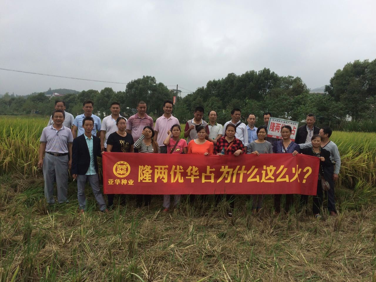 2015年9月25日,在遂川縣曾總的帶領(lǐng)下,來自各個鄉(xiāng)鎮(zhèn)的精英零售商們一起去示范田塊觀摩隆兩優(yōu)華占。據(jù)了解,從今年已經(jīng)收割了的隆兩優(yōu)華占來看,農(nóng)戶收割的產(chǎn)量普遍比其他品種要高出200斤左右,并且抗病抗倒能力突出,已經(jīng)成為老百姓心里的明星品種。今天觀摩的這塊田是800公斤攻關(guān)田,映入眼簾的是滿滿的金黃色的穗子,看第一眼就滿心欣喜,看第二眼忍不住去零距離接觸,看第三眼就會走入田塊中央,全身心的與隆兩優(yōu)華占近距離接觸。據(jù)攻關(guān)田塊負(fù)責(zé)人黃站長說:“旁邊已經(jīng)收割的田塊之前種的也是隆兩優(yōu)華占,但是是農(nóng)戶自己種的,沒有我們這個的好,最后的畝產(chǎn)量有1450斤,我們的攻關(guān)田達(dá)到畝產(chǎn)1600斤基本沒問題!”聽到這話,眾零售商更是樂得合不攏嘴,紛紛表示要大力推廣隆兩優(yōu)華占。