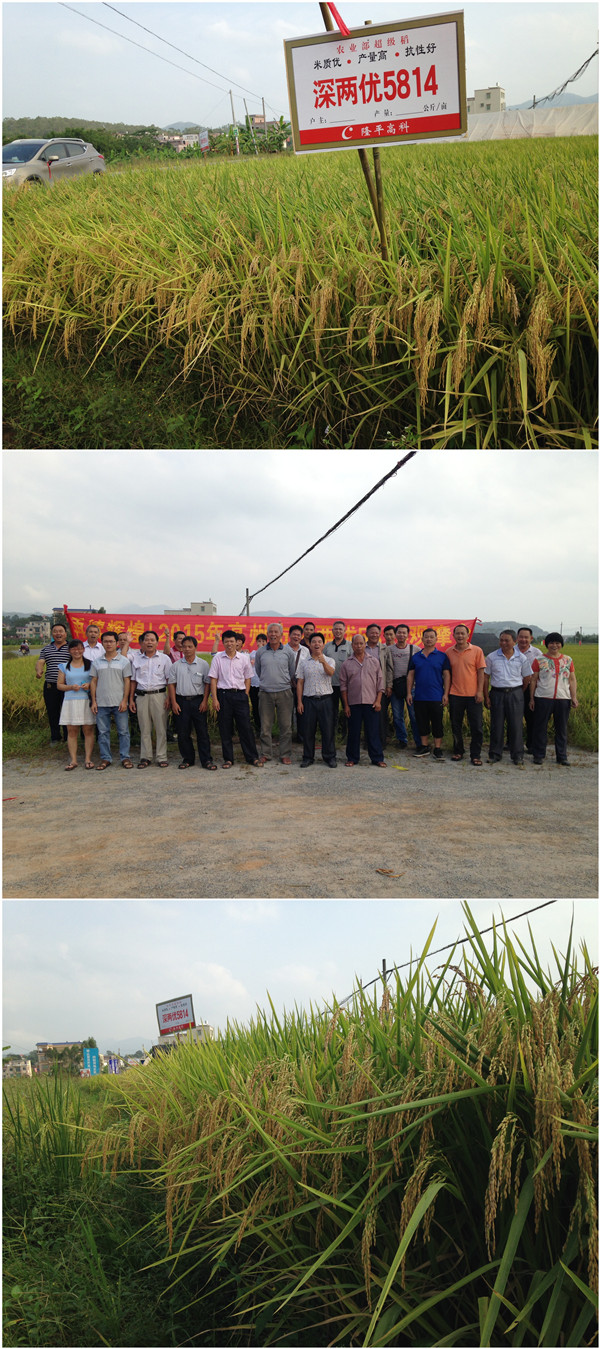 2015年10月31日,湖南亞華種子有限公司代理商之一的鄭信權(quán),組織高州各個(gè)鄉(xiāng)鎮(zhèn)核心零售商,來(lái)到了位于廣東高州東岸鎮(zhèn)的百畝連片深兩優(yōu)5814示范片現(xiàn)場(chǎng)觀摩,查看“彩虹”過(guò)后的大田表現(xiàn)。