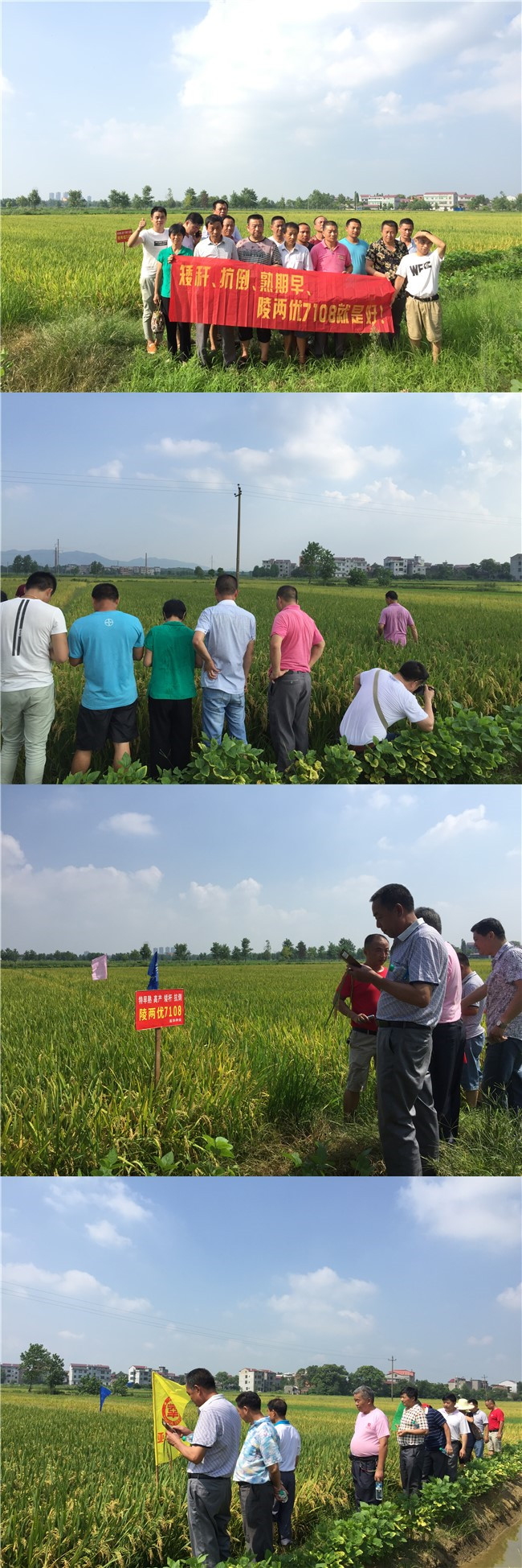 為了繼續(xù)延續(xù)品種的輝煌并將好種子推廣到千家萬戶,高安和豐城市代理商于7月9日組織核心鄉(xiāng)鎮(zhèn)代理商到田間現(xiàn)場觀摩了陵兩優(yōu)7108?,F(xiàn)場所在村80%的早稻是亞華種業(yè)出品的陵兩優(yōu)7108,已經(jīng)連續(xù)種植3年,其優(yōu)異的表現(xiàn)得到了農(nóng)戶的普遍認(rèn)可。大規(guī)模種植的田間表現(xiàn)大家看在眼里,來自汪家的經(jīng)銷商每年銷量都在3000公斤以上,他對品種的認(rèn)可也得到了其他經(jīng)銷商的認(rèn)同----抗倒強(qiáng)、抗病好、豐產(chǎn)、穩(wěn)產(chǎn)。