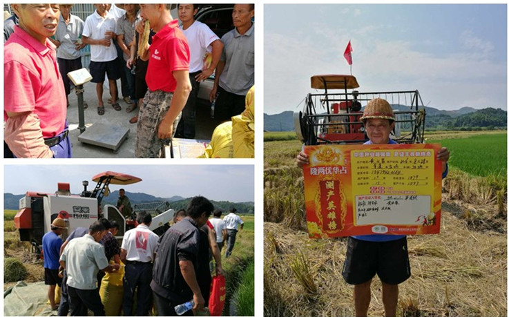 江坊村種植大戶(hù)黃義昌去年參觀(guān)了一季早示范田,今年自己種了十幾畝,在七月份連續(xù)高溫的炙烤下,隆兩優(yōu)華占耐高溫的特性顯露無(wú)疑,周?chē)鷦e的品種結(jié)實(shí)率只有一半不到,而隆兩優(yōu)華占卻很少有癟谷,結(jié)實(shí)率超過(guò)90%。經(jīng)過(guò)多人見(jiàn)證,現(xiàn)場(chǎng)收割1.3畝,收割濕谷1879斤,扣除15%水分,合畝產(chǎn)干谷1597斤,我們也將繼續(xù)關(guān)注后續(xù)再生稻的表現(xiàn)。