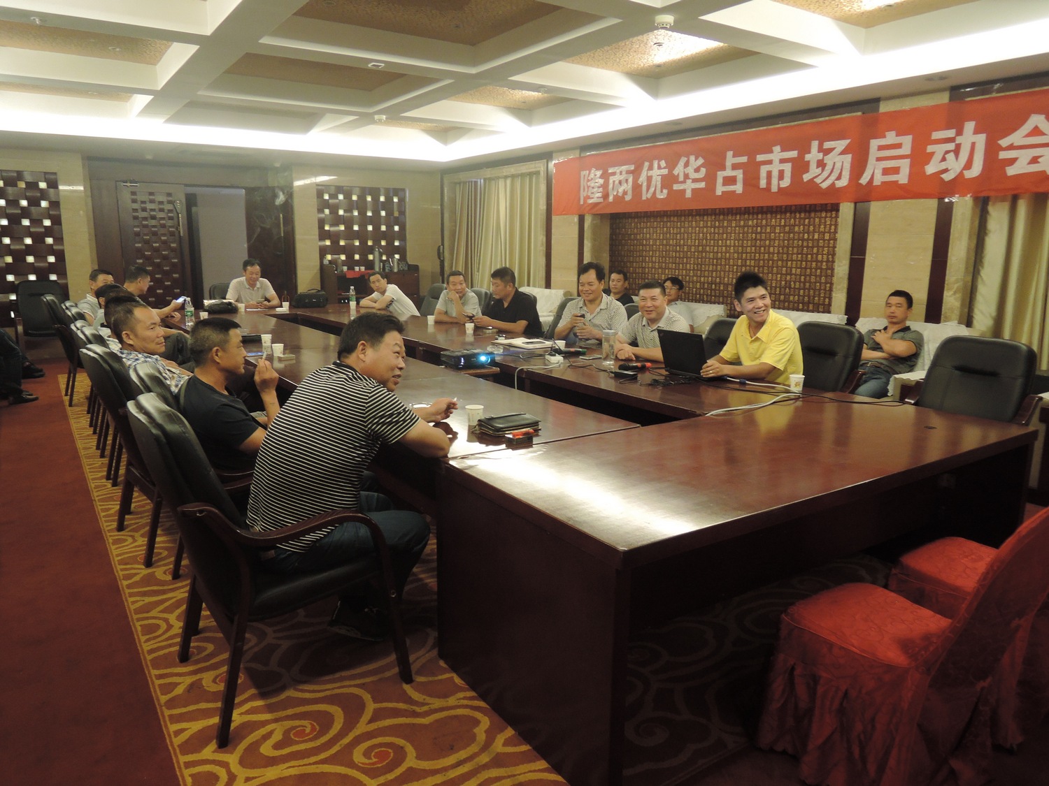 在室內會議中,首先由負責監(jiān)利市場銷售工作的李小軍經(jīng)理對隆兩優(yōu)華占在全國各地、全省各地以及監(jiān)利縣部分鄉(xiāng)鎮(zhèn)的表現(xiàn)情況給大家做出分享,并強調隆兩優(yōu)華占自上市以來一直供不應求,今年依然執(zhí)行“不預定、不供貨”的銷售政策。