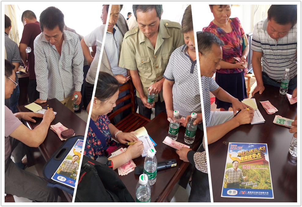 通過(guò)品種介紹、栽培技術(shù)培訓(xùn),結(jié)合農(nóng)戶今年種植優(yōu)秀表現(xiàn),老百姓紛紛排隊(duì)交錢(qián)預(yù)定種子,35人參加會(huì)議,其中27位農(nóng)戶合計(jì)預(yù)定了3005斤隆兩優(yōu)華占。此次訂購(gòu)會(huì)的圓滿召開(kāi),為隆兩優(yōu)華占下一步預(yù)定工作奠定了堅(jiān)實(shí)的基礎(chǔ)。