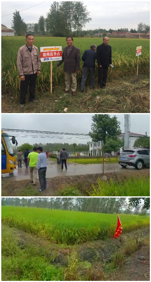 江蘇省淮安市金湖縣,因境內(nèi)白馬湖、寶應(yīng)湖、高郵湖三湖環(huán)繞,由敬愛的周恩來總理取名“金湖”,象征資源豐富,日出斗金。2016年9月28號由金湖縣金源種業(yè)組織的80多位零售商及種田大戶,來到位于金湖縣荷花蕩的隆兩優(yōu)華占百畝示范片。
