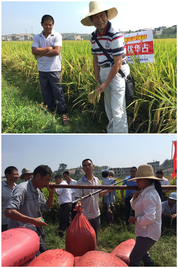 2016年9月14日上午,修水開啟了隆兩優(yōu)華占測產(chǎn)觀摩會首秀,各鄉(xiāng)鎮(zhèn)零售商以及種田大戶四十余人齊聚大橋鄉(xiāng)大橋村隆兩優(yōu)華占十余畝連片示范田,共同見證了隆兩優(yōu)華占實割測產(chǎn)喜獲豐收。