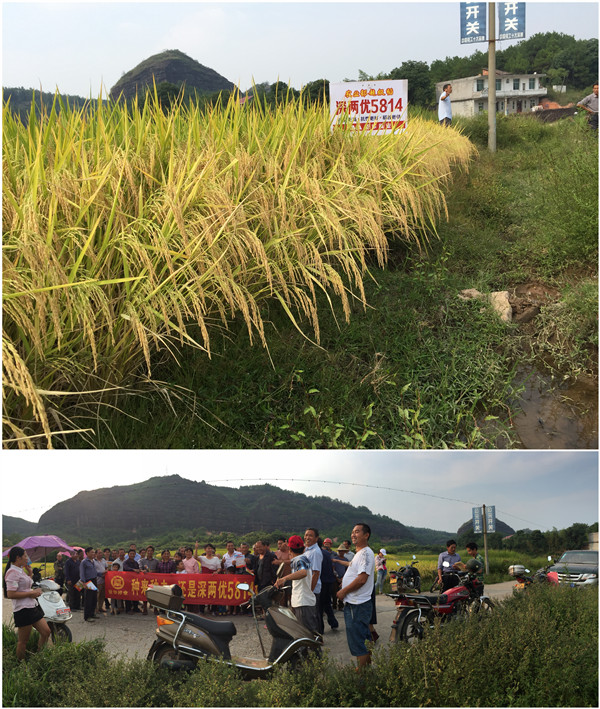 深兩優(yōu)5814自進入種業(yè)市場以來,一直以它穩(wěn)定、優(yōu)異的表現(xiàn)深受青睞。2016年9月23日,在流口鎮(zhèn)經(jīng)銷商黃老板組織下,召開一場50多人的農民觀摩會。此次會議主要展現(xiàn)深兩優(yōu)5814與當?shù)仄渌贩N對比下的表現(xiàn)。深兩優(yōu)5814在七月中旬至八月中旬長達一個月的持續(xù)高溫下依舊有高達89%的結實率,而另外的幾個品種卻差強人意。有一種植戶隨機采取了一穗5814和一穗其他品種,從外觀上看去,兩者差不多都有300多粒,但是農戶細數(shù)后驚嘆道:“深兩優(yōu)5814有276粒,實粒數(shù)有243粒;另外品種有264粒,實粒數(shù)76粒”;還有一種植戶說道:“自家今年種植了十幾畝常規(guī)種,今年預計畝產有500斤就算很好了”。