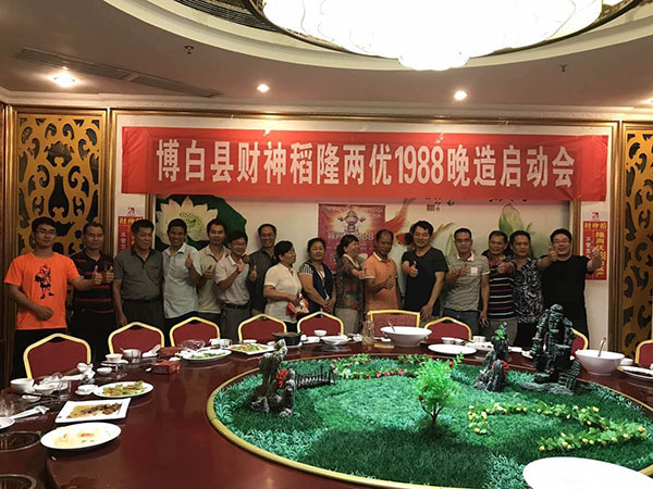 2017年6月10日,在廣西博白縣海上王國際大酒店,來自各鄉(xiāng)鎮(zhèn)優(yōu)秀的農(nóng)資行業(yè)經(jīng)銷商共聚一堂,探討“中國財神稻”——隆兩優(yōu)1988的晚造銷售大計。