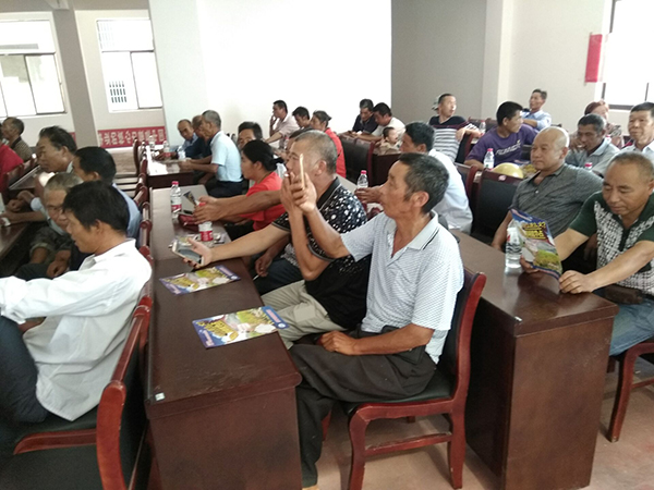 上午10點(diǎn)半,在射埠鎮(zhèn)農(nóng)技站工作人員和代理商鄧總的組織下,所有零售商和種植大戶參與室內(nèi)會(huì)議。會(huì)議中,農(nóng)業(yè)局工作人員就現(xiàn)代農(nóng)業(yè)、再生稻在未來(lái)幾年內(nèi)的定位進(jìn)行了講解,就再生稻的栽培技術(shù)進(jìn)行授課。整個(gè)會(huì)議過(guò)程,湘潭縣電視臺(tái)進(jìn)行了跟蹤報(bào)道。