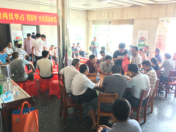 隨著田間觀摩會的進行,經(jīng)銷商丁偉就今年隆兩優(yōu)華占在攸縣的銷售情況展開介紹,對于明年市場規(guī)劃與大戶作了簡單的交流。之后向大家培訓(xùn)了隆兩優(yōu)華占再生稻栽培技術(shù),并預(yù)計今年再生稻的畝產(chǎn)量在500-600斤左右!與會大戶紛紛表示,種隆兩優(yōu)華占,高產(chǎn)穩(wěn)產(chǎn)靠得??!相信隆兩優(yōu)華占明年在攸縣市場必將繼續(xù)大放異彩!可以龍稻,何必其他!