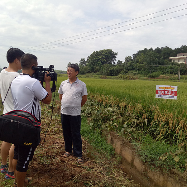 該基地是在常寧蓬塘鄉(xiāng)楊塘村,是常寧市農(nóng)業(yè)技術(shù)推廣中心承擔(dān)省再生稻211工程的示范片,統(tǒng)一種植我省再生稻主推品種隆兩優(yōu)華占,整片示范田是統(tǒng)一的技術(shù)指導(dǎo)和田間管理,在經(jīng)歷了今年7月份的高溫考驗(yàn)下,當(dāng)前大田表現(xiàn)青枝活桿、結(jié)實(shí)率高、劍葉挺拔、無倒伏現(xiàn)象。在大家見證下,進(jìn)行了小面積測產(chǎn),測產(chǎn)結(jié)果達(dá)940公斤/畝,初步確保隆兩優(yōu)華占一季加再生稻畝產(chǎn)超1000公斤的目標(biāo)產(chǎn)量。常寧市電視臺對本次會議進(jìn)行了全程報(bào)道,采訪了楊塘村劉書記,劉書記表示該品種在去年小面積種植表現(xiàn)很好,今年就大面積種植該品種,包括200多畝隆兩優(yōu)華占示范片,預(yù)計(jì)頭季平均畝產(chǎn)可達(dá)700公斤以上,當(dāng)天現(xiàn)場在高產(chǎn)丘塊測產(chǎn)產(chǎn)量高達(dá)940公斤。