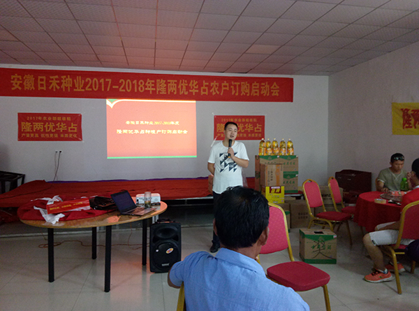 2017年8月7、8、9日分別在霍邱戶胡鎮(zhèn)、河口鎮(zhèn)和長集鎮(zhèn)召開隆兩優(yōu)華占訂購“千人大會”,三場訂購分會均由安徽日禾種業(yè)總經(jīng)理許進及亞華種業(yè)安徽分公司皖西大區(qū)經(jīng)理黃明燈主持。