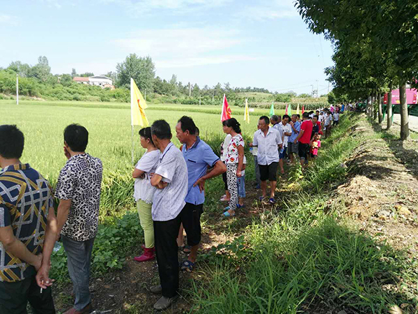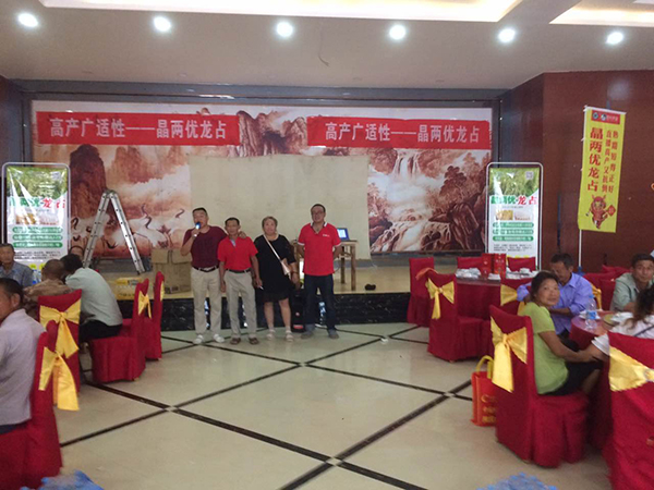 2017年8月9日、12日和13日分別在棗陽王城鎮(zhèn)、熊集鎮(zhèn)和吳店鎮(zhèn)召開了三場晶兩優(yōu)龍占的田間觀摩會(huì)和訂購會(huì),在代理商陳福剛的組織下,共有700多名農(nóng)戶參與了會(huì)議。