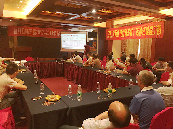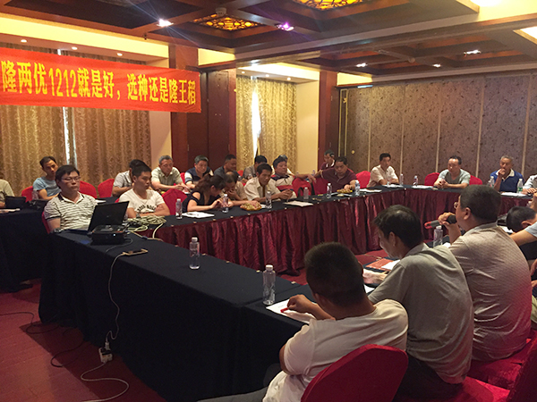 會(huì)上,唐經(jīng)理深入淺出的介紹了公司情況、“隆兩優(yōu)1212”的品種特征以及高產(chǎn)栽培技術(shù)。隨后,魏總重點(diǎn)闡述了大公司大品牌的運(yùn)作思路、同類產(chǎn)品在高溫極端天氣下各區(qū)域的表現(xiàn)以及集團(tuán)公司對(duì)市場(chǎng)管控的嚴(yán)格操作。
