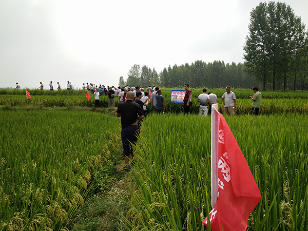 上午9時(shí),大家來到示范田,映入眼簾的則是600畝連片種植的隆兩優(yōu)華占,田埂邊插滿了小紅旗,壯觀無比。大家一路邊走邊看、邊看邊“摸”,很多人情不自禁的感嘆:“這品種真好,賣了這個(gè)品種都不用擔(dān)心農(nóng)戶會(huì)找你事“、“是的,我今年也種了,溫度這么高但這產(chǎn)量可不低,明年多栽點(diǎn)。”
