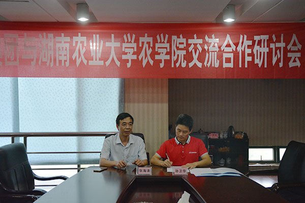 會后,孫衛(wèi)華先生與張海清院長共同簽訂了《湖南農(nóng)業(yè)大學(xué)與用人單位建立畢業(yè)生就業(yè)基地合作意向書》,雙方希望在未來企業(yè)員工繼續(xù)教育、畢業(yè)生就業(yè)與實習(xí)等方面加強校企合作,實現(xiàn)共同發(fā)展。